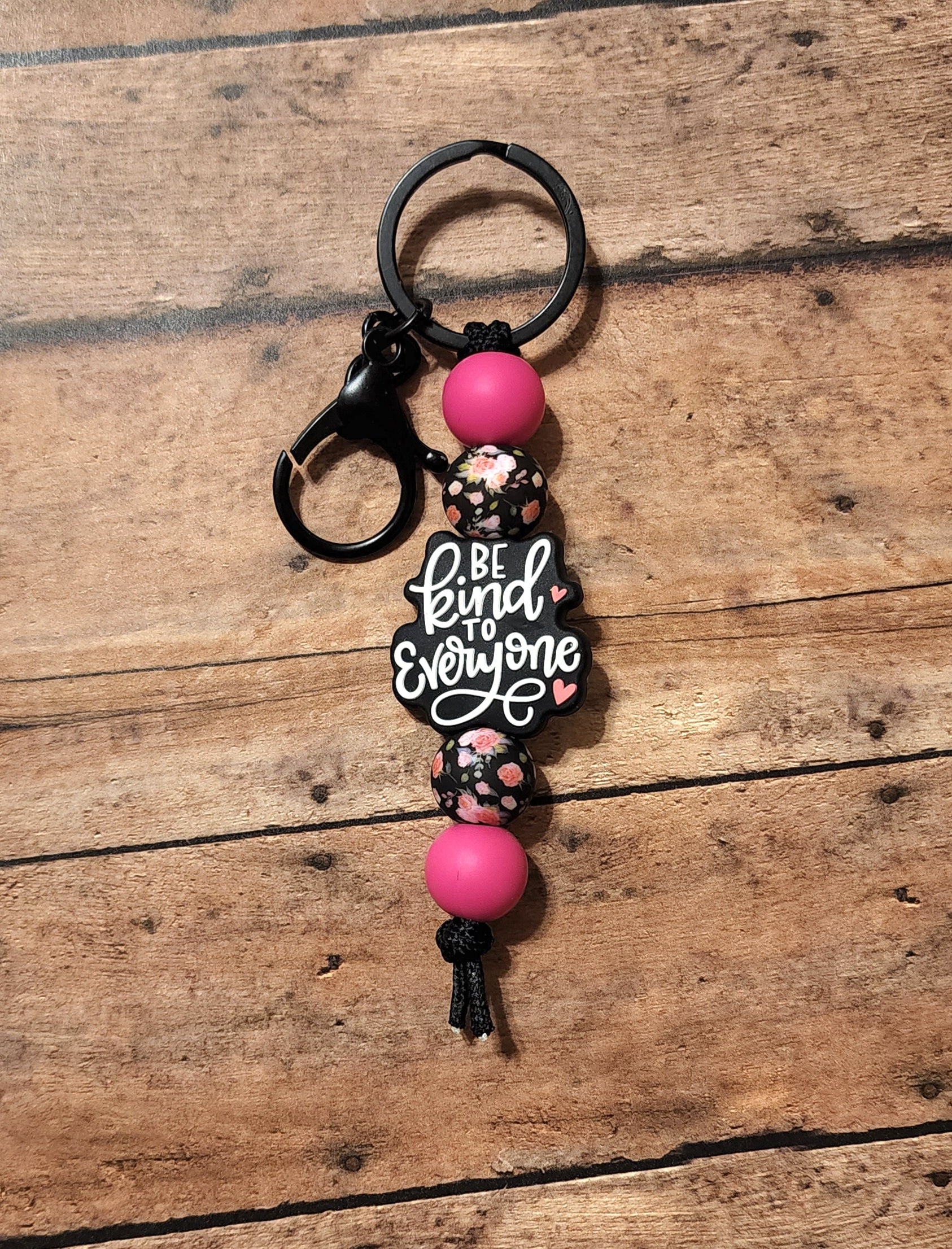 Be Kind To Everyone Silicone Bead Mini Keychain | Pink & Black Floral Print Silicone Beaded Keychain