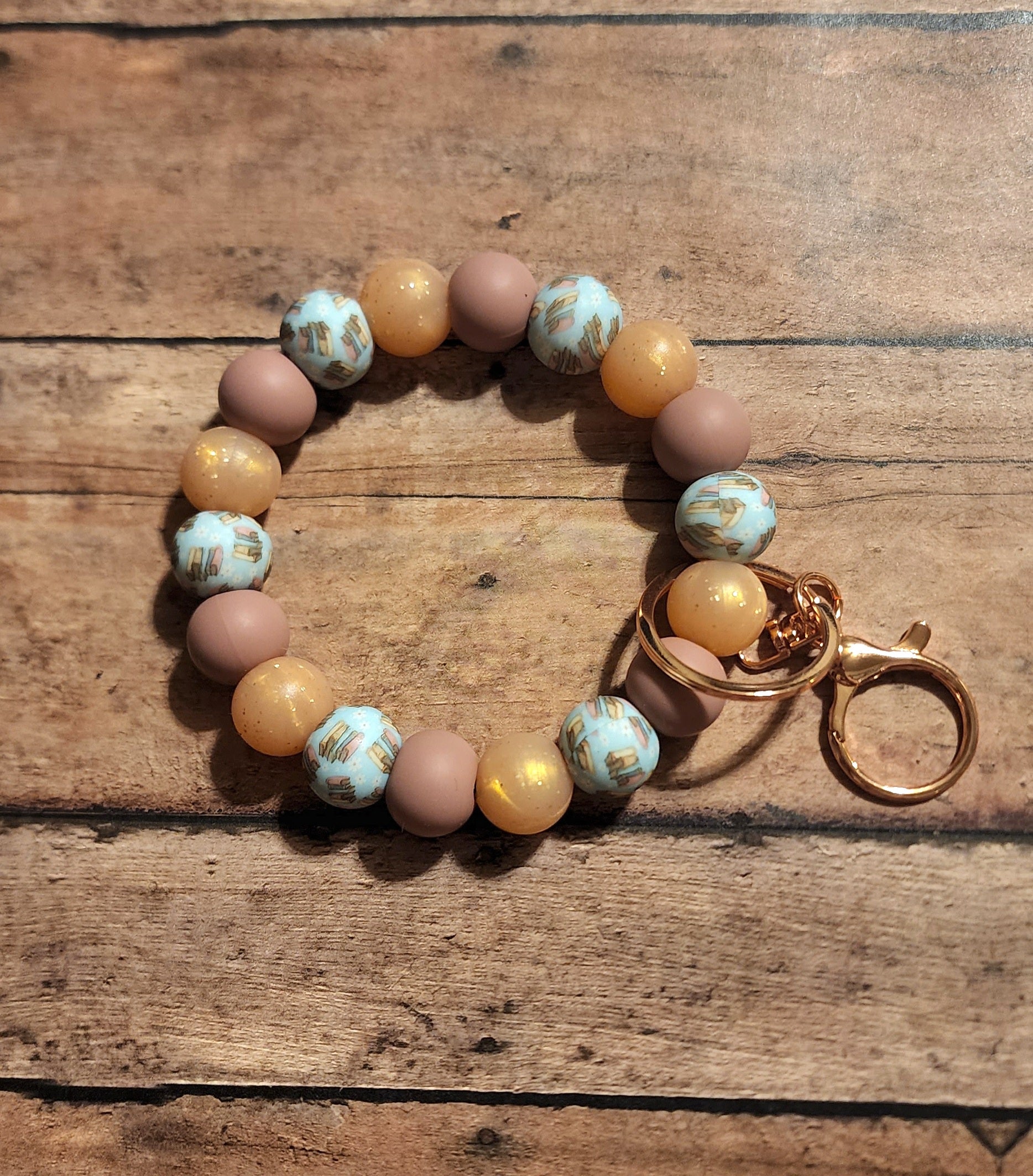 Book Stack Print Silicone Bead Wristlet Keychain | Blush & Blue Silicone Beaded Wristlet Keychain | Gift for Book Lovers