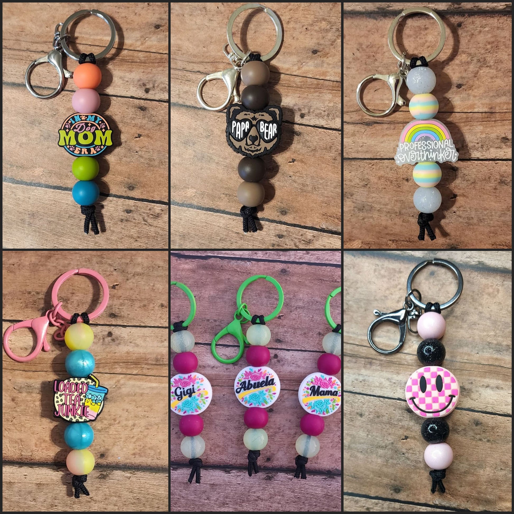 Fill out the text box on this listing with any colors, prints, or themes you want included. Don't forget to mention if you want any glow-in-the-dark or glitter! Aren't sure what you want? Just list a few of your favorite things and we will send you options! Our mini keychain size is 4-6 beads. If you want it longer, check out our keychain option.