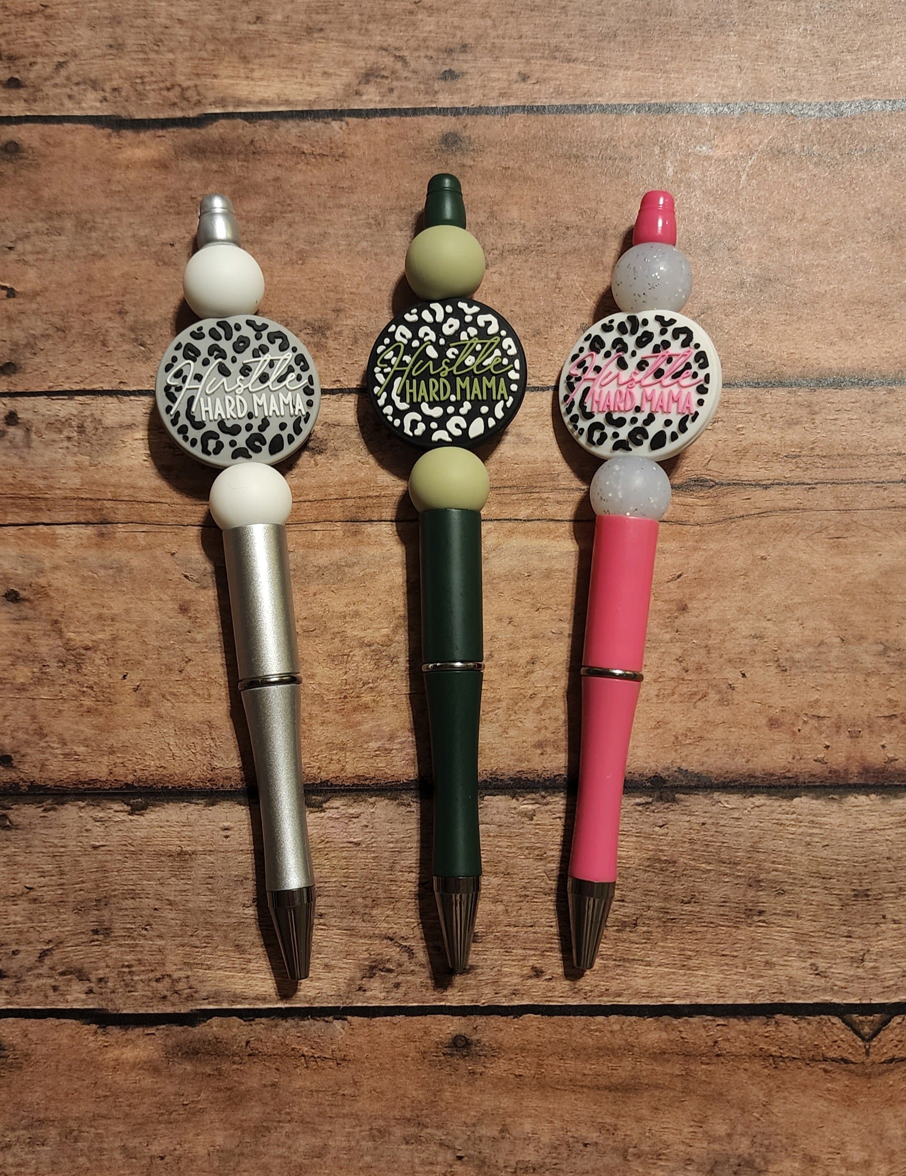 Hustle Hard Mama Silicone Bead Pens | Silver Green Pink Leopard Print Mama Silicone Beaded Pens