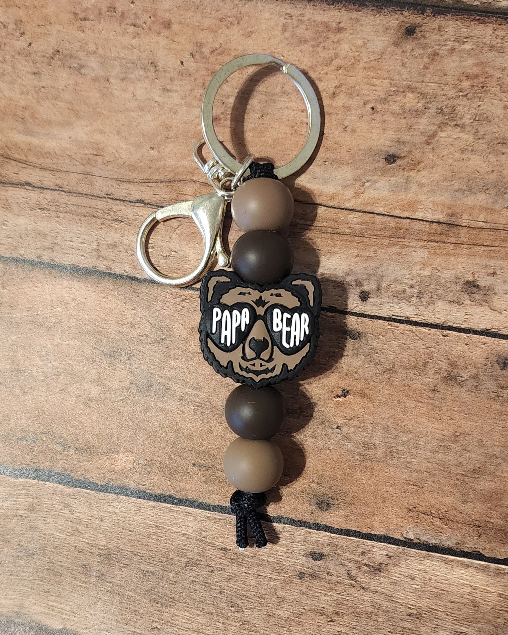 Papa Bear Silicone Bead Mini Keychain | Dad Silicone Beaded Keychain
