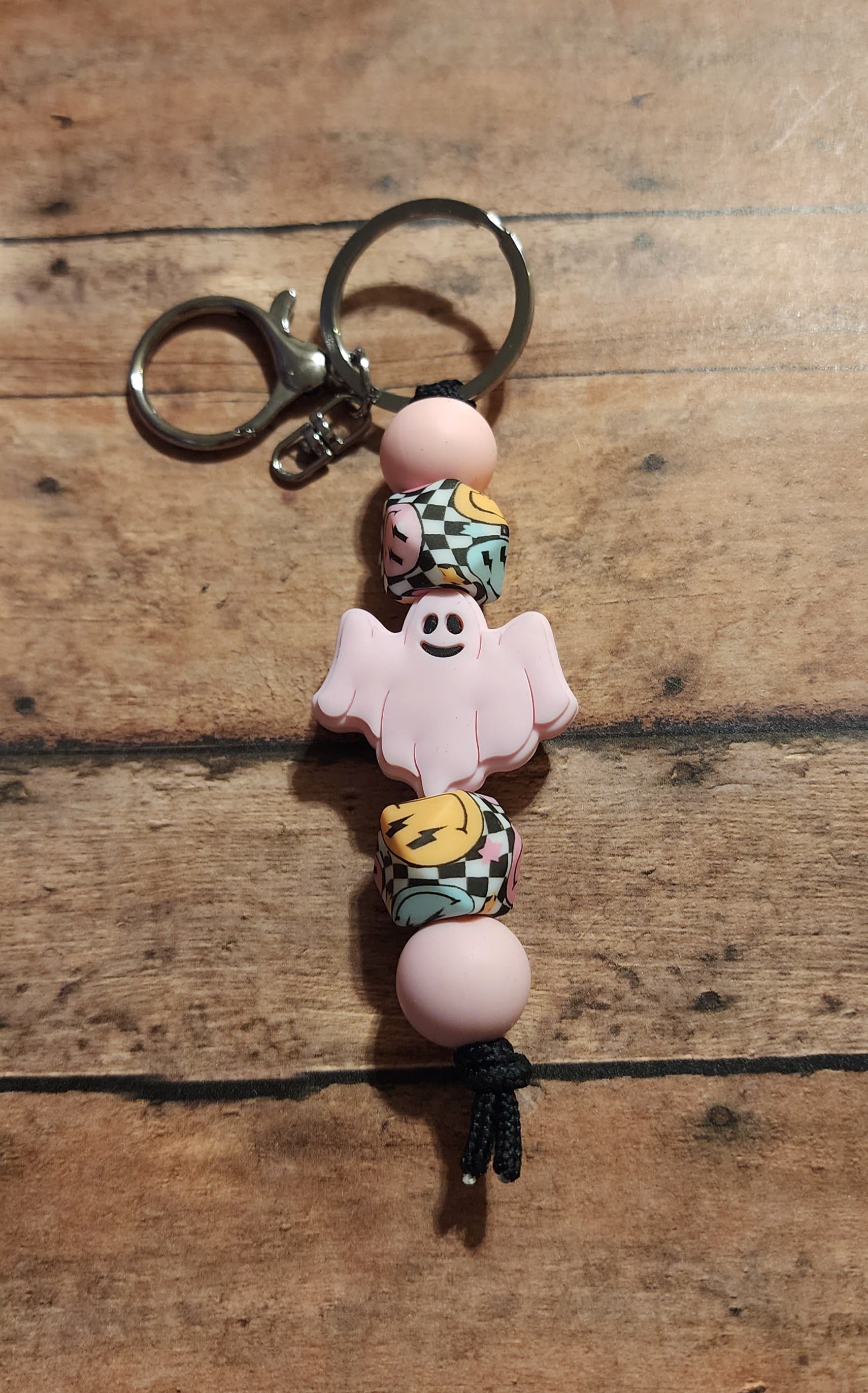Pink Ghostie Checker | Silicone Beaded Mini Keychain