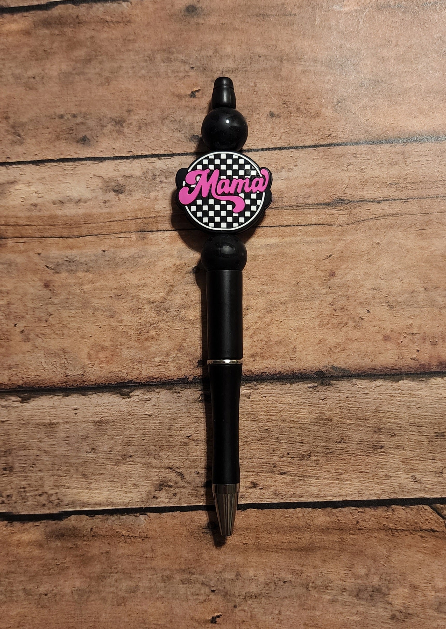 Mama Checkered Silicone Bead Pen | Pink & Black Silicone Beaded Pen For Moms