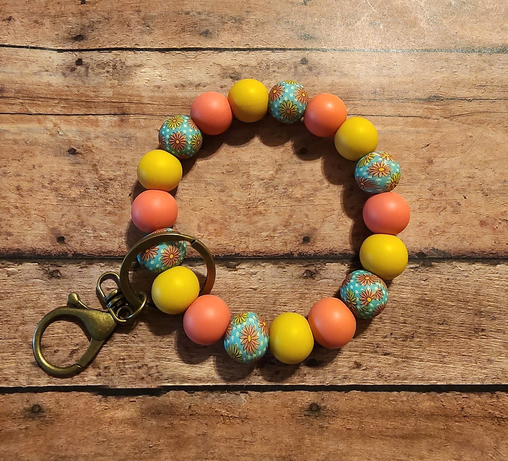 Polka Dot Flowers | Silicone Beaded Wristlet Keychain