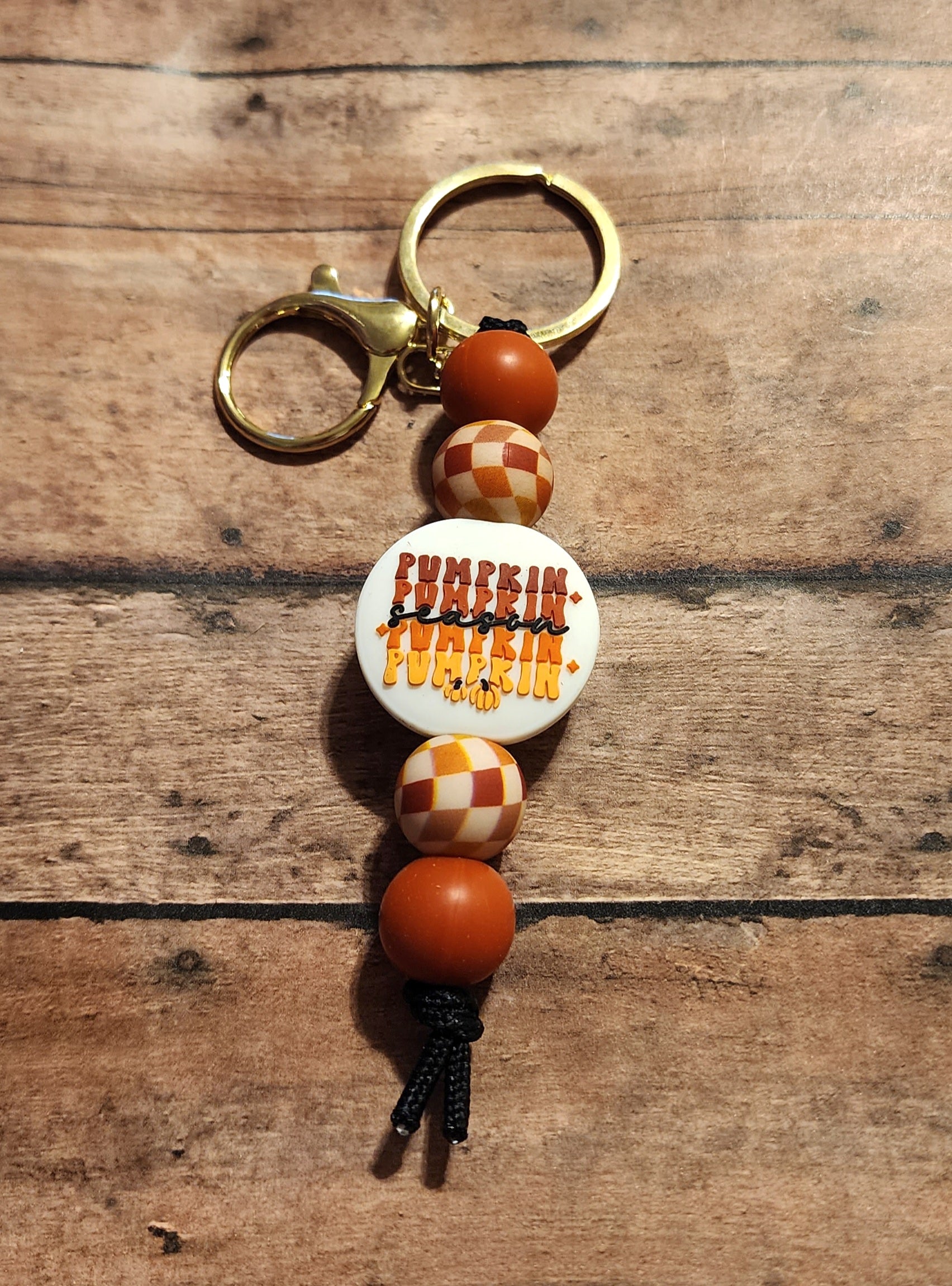 Pumpkin Season Checker | Silicone Beaded Mini Keychain