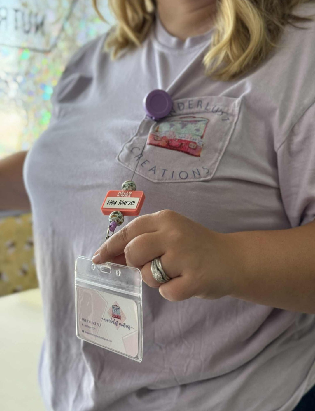 This badge reel is unique in style and durable quality. It is handmade in Denison, TX. Perfect to gift or treat yourself!
